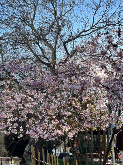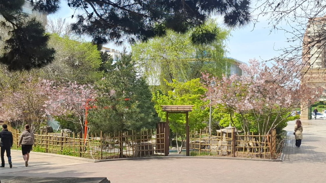 Bakının Xətai rayonundakı Heydər Əliyev parkındakı “Yapon bağı”na üz tutanlar həmin ölkədə ən qədim ayinlərdən sayılan Hanami - “çiçəkləyən sakura bayramı”nın təəssüratını yaşayırlar. Yaponiyada çiçəkləyən sakuraya tamaşa etmək ən gözəl zövqlü əyləncə hesab edilir. Bağın müsafiri olan AZƏRTAC-ın müxbirləri də həmin zövqü yaşayıblar.