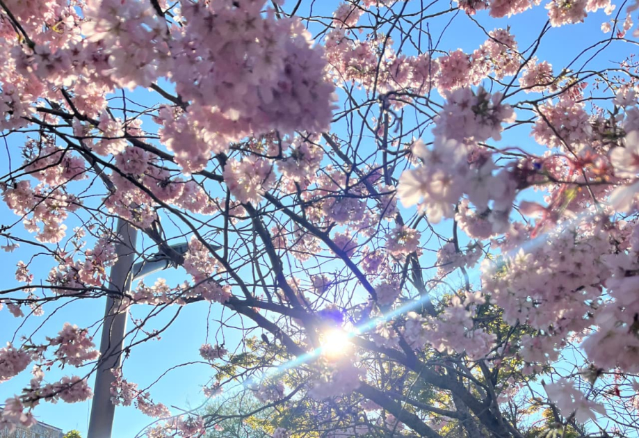 Sakuranın çəhrayı çiçəkləri altında