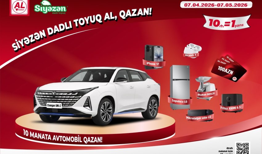 Lotereya 7 aprel – 7 may 2026-cı il tarixlərini əhatə edir və bütün AL Market filiallarında keçirilir. Kampaniyada iştirak etmək üçün alıcıların minimum 10 AZN dəyərində Siyəzən dadlı toyuq məhsulları alması kifayətdir. Hər 10 AZN-lik alış-veriş iştirakçıya 1 şans qazandırır.