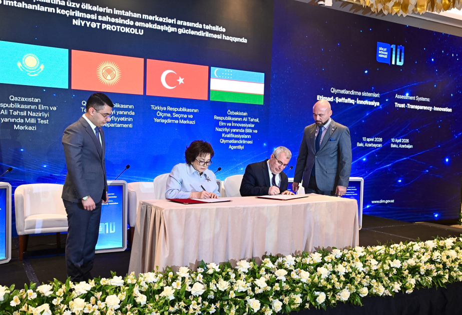 AZƏRTAC xəbər verir ki, niyyət protokolu Dövlət İmtahan Mərkəzi, Qazaxıstanın Elm və Ali Təhsil Nazirliyi yanında Milli Test Mərkəzi, Qırğızıstan Təhsil Nazirliyi yanında Təhsilin Keyfiyyətinin İnkişafı Departamenti, Türkiyənin Ölçmə, Seçmə və Yerləşdirmə Mərkəzi və Özbəkistanın Ali Təhsil, Elm və İnnovasiyalar Nazirliyi yanında Bilik və Bacarıqların Qiymətləndirilməsi Agentliyi arasında imzalanıb.