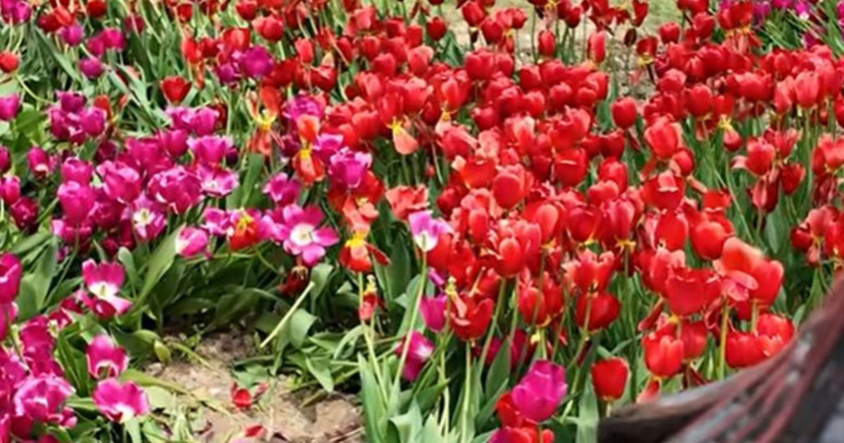 NOCOMMENT.az xəbər verir ki, dağlalələri dibindən qoparılıb, lalə və zanbaqlardan ibarət olan hissədəki çiçəklər qırılıb.