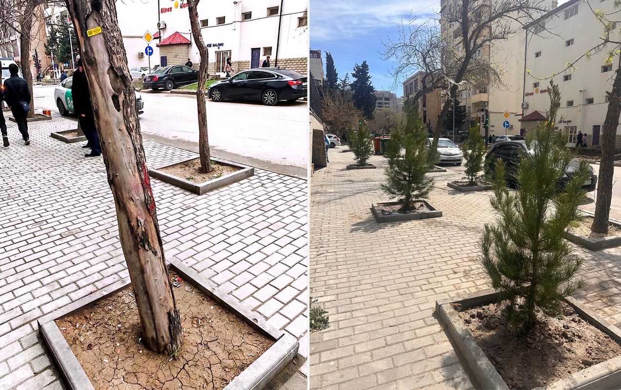 Nərimanovda quru ağacların yerinə yeni ağaclar əkildi - FOTOLAR