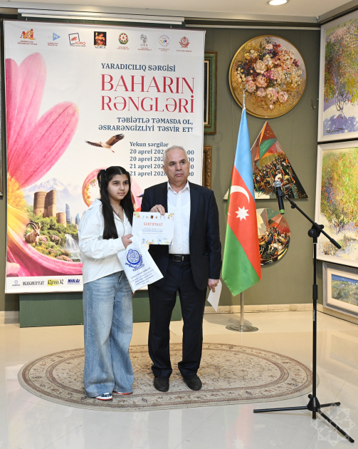 Sonda sərgidə əsərləri nümayiş olunan iştirakçılara sertifikat təqdim olunub.