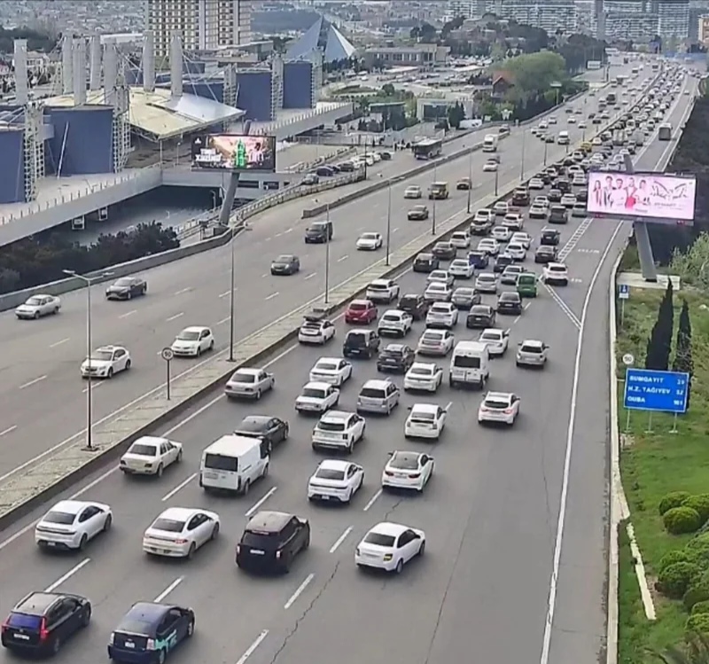 Bakının bir sıra yollarında nəqliyyatın sıxlığı müşahidə olunur.