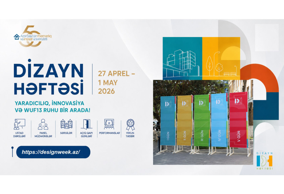 AzMİU-nun Dizayn fakültəsinin təşkilatçılığı ilə reallaşan “Dizayn həftəsi” bu il xüsusi əhəmiyyət daşıyır. Tədbir Prezident İlham Əliyevin müvafiq Sərəncamı ilə ölkəmizdə elan olunmuş “Şəhərsalma və Memarlıq İli” çərçivəsində keçirilir və Bakının ev sahibliyi edəcəyi Ümumdünya Şəhərsalma Forumunun On Üçüncü sessiyası (WUF13) ərəfəsində gənclərin yaradıcılıq potensialının ortaya çıxarılmasına xidmət edir.