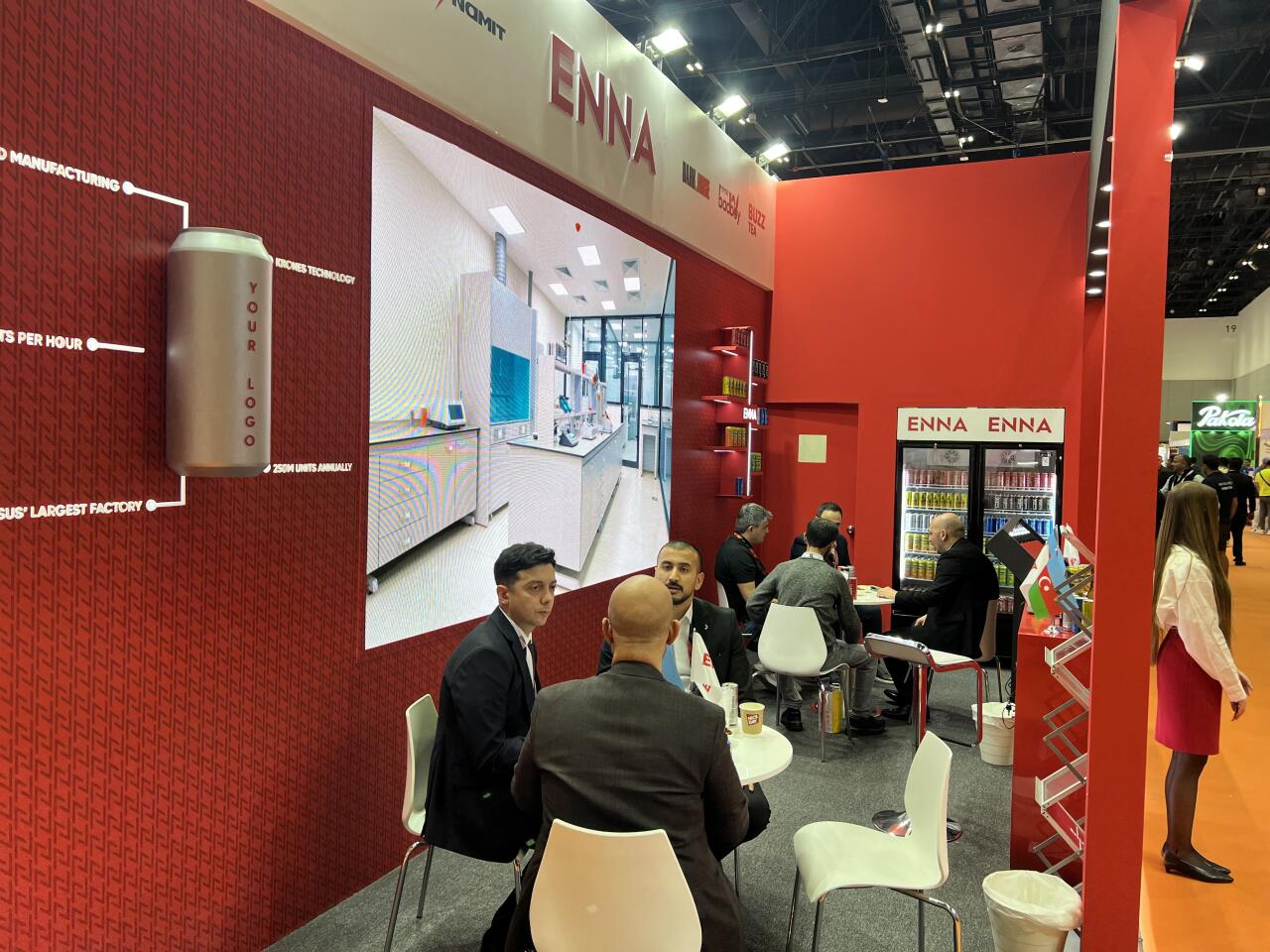 Stendi ziyarət edənlər həm şəxsi marka əməkdaşlığı, həm də "ENNA" zavodunda istehsal olunan yerli brendlərimiz - BUZZ Cola, BUZZ Tea, Plus Ower, Dark Horse, Dinamit, Bad boy içkiləri haqqında məlumatlandırılıb. Ziyarətçilərə VR vasitəsilə zavodun virtual turu təşkil olunub. Zavodun istehsal prosesi ilə yaxından tanış olan bir çox ölkələrin nümayəndələri ilə ixrac və istehsalla bağlı ilkin razılaşmalar artıq əldə olunub.