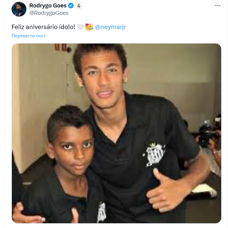 "Real Madrid"in cinah hücumçusu Rodriqo Qoes sosial şəbəkə hesablarında dünən 34 yaşı tamam olan həmyerlisi Neymarla uşaqlıqda çəkdirdiyi fotonu paylaşıb.