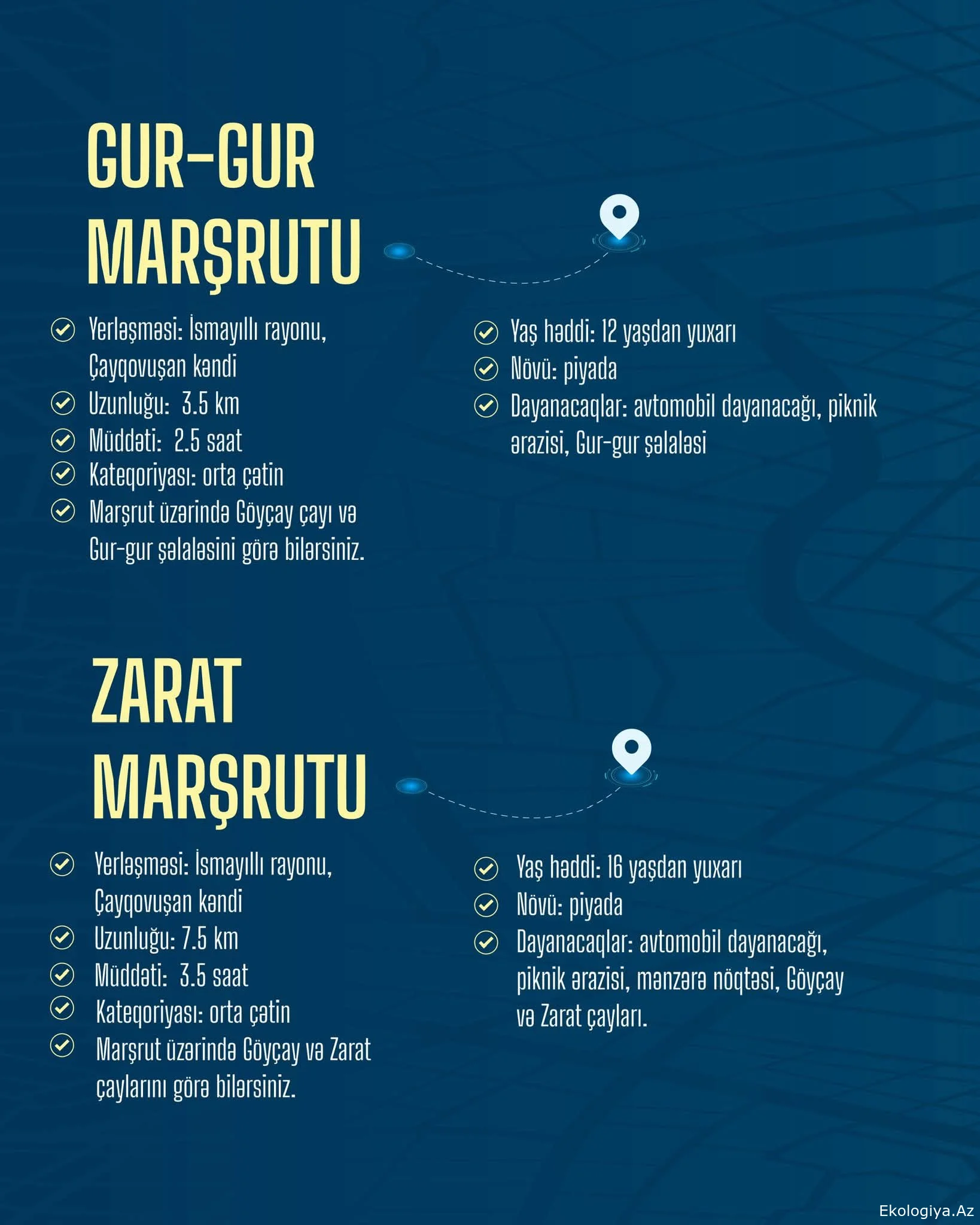 Marşrutlardan istifadə edərkən təbiətdə iz buraxmamaq və müəyyən edilmiş qaydalara riayət etmək hər birimizin məsuliyyətidir və davamlı ekoturizmin inkişafına mühüm töhfə verir.