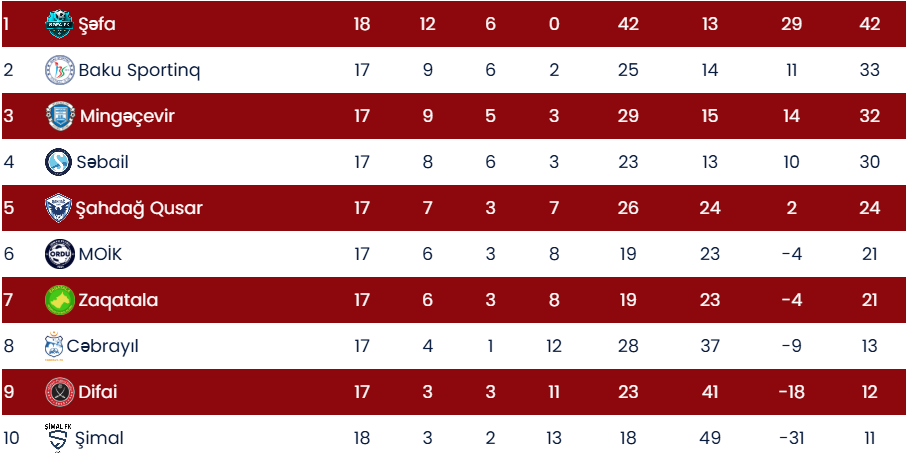 Beləliklə, "Şəfa" xallarını 42-yə çatdırıb və ən yaxın izləyicisi ilə fərqi 9-a yüksəldib.