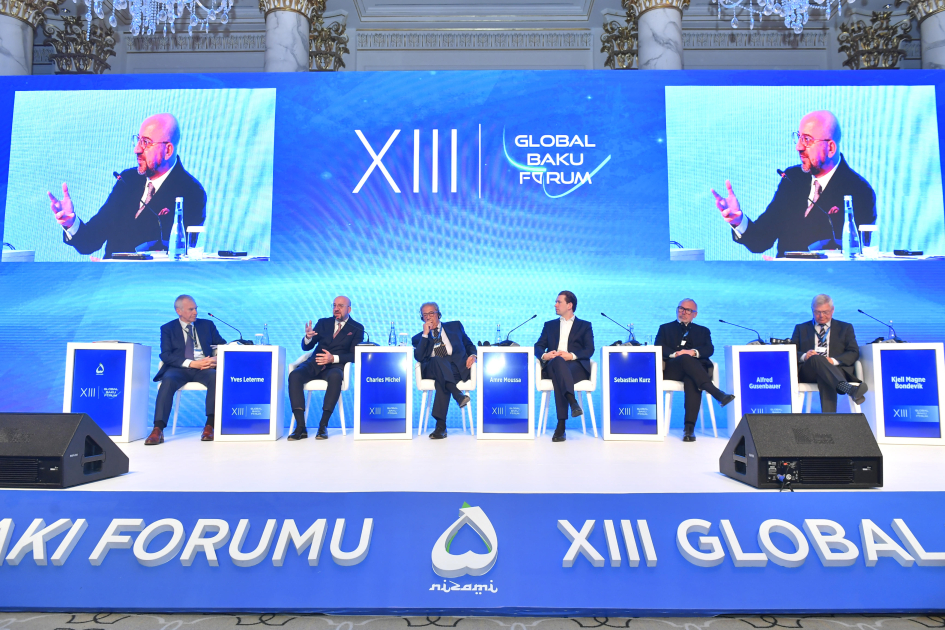 Tədbirdə çıxış edən Avropa İttifaqı Şurasının (Aİ) sabiq Prezidenti Şarl Mişel Aİ-nin əsas prinsiplərinin - sülh, rifah və demokratik dəyərlərin hazırda müxtəlif təhdidlər altında olduğunu diqqətə çatdırıb.