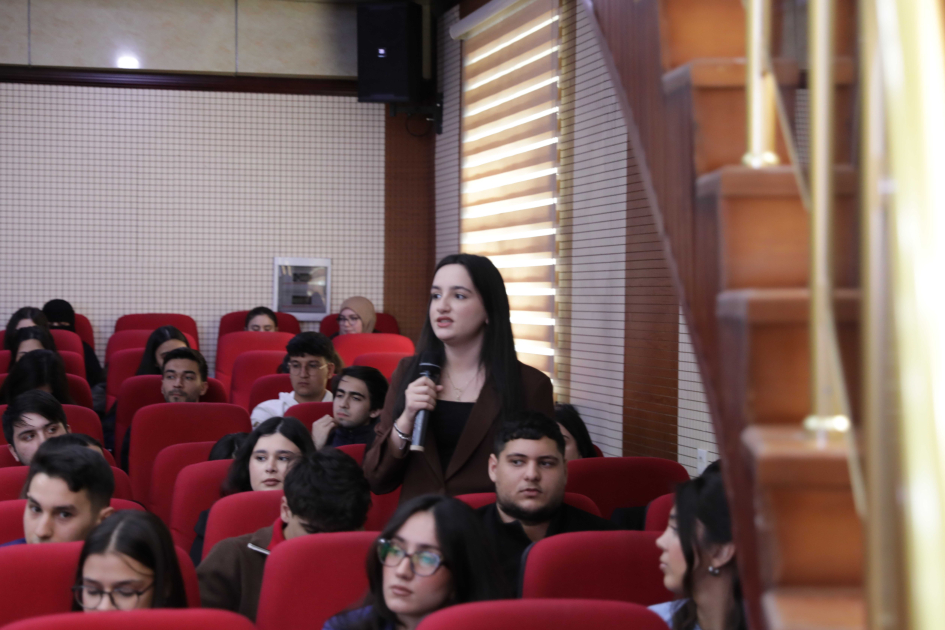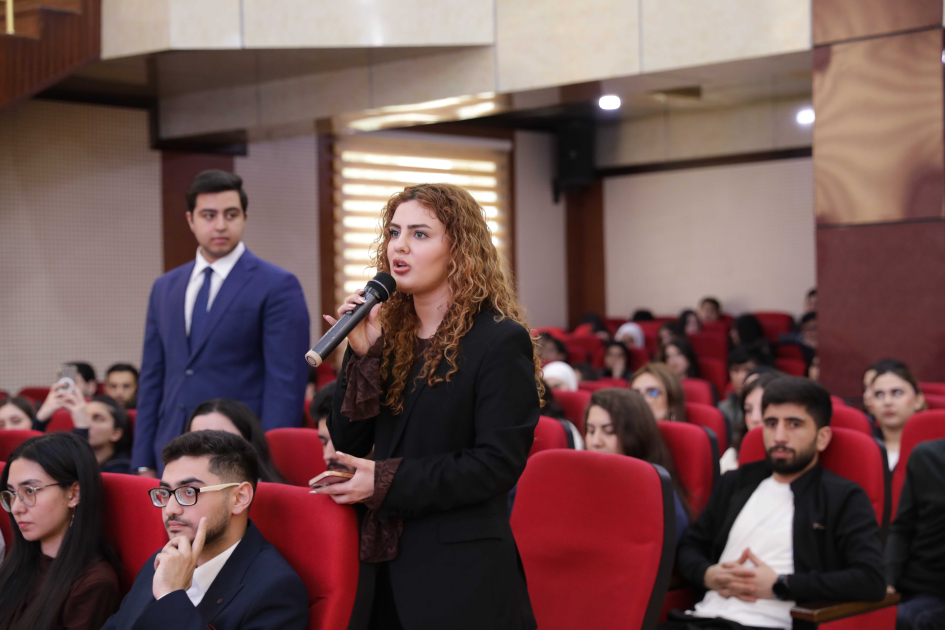 Daha sonra nazir müavini tələbələri XİN sisteminə işə qəbul qaydaları, diplomatik xidmətin üstünlükləri, bu sahədə yaradılan imkanlarla tanış edib və onların suallarını cavablandırıb.