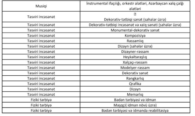 Bildirilib ki, siyahıda qeyd olunan qeyri-pedaqoji ixtisaslara sahib şəxslər müəllimlərin işə qəbulu üzrə müsabiqədə iştirak edə bilərlər. Müsabiqədə iştirakı nəzərdə tutulan pedaqoji təhsili olmayan ali təhsilli mütəxəssislər işə qəbul olunduqdan sonra müvafiq təlim kurslarına cəlb olunacaq.