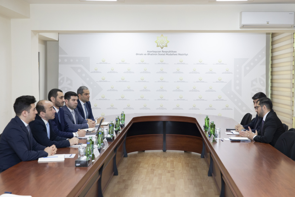 Əmək və Əhalinin Sosial Müdafiəsi Nazirliyinin tabeliyində Dövlət Sosial Müdafiə Fondunun (DSMF) sədri Zəka Mirzəyev V “Yüksəliş” müsabiqəsinin qalibləri İrşad Əsgərxanlı və Qoşqar Daşdiyevlə görüşüb.