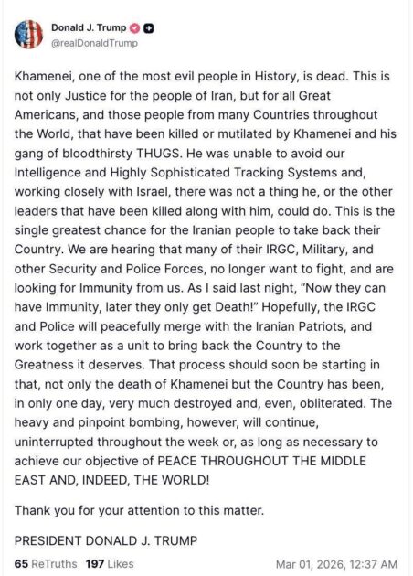 Tramp RƏSMƏN AÇIQLADI: “Xamenei artıq yoxdur”