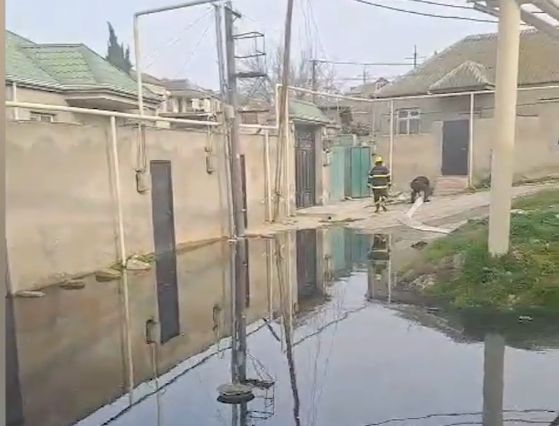 Xətaidə kanalizasiya çöküb, evləri su basıb(VİDEO)