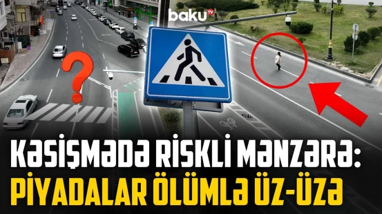 Bakıda piyadalar üçün çıxılmaz vəziyyət: Zolaq yarıda kəsilir - VİDEO