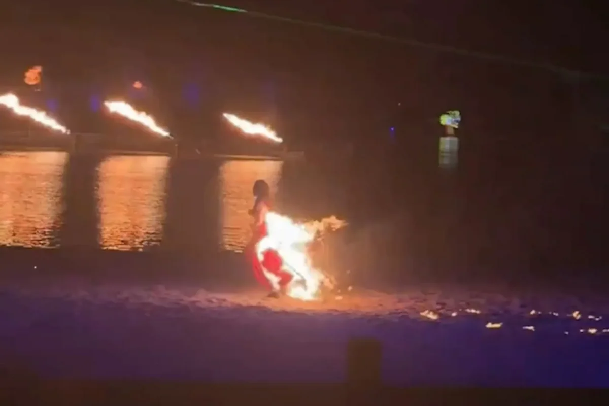Alovla rəqs göstərən qadın səhnədə yanmağa başladı - VİDEO