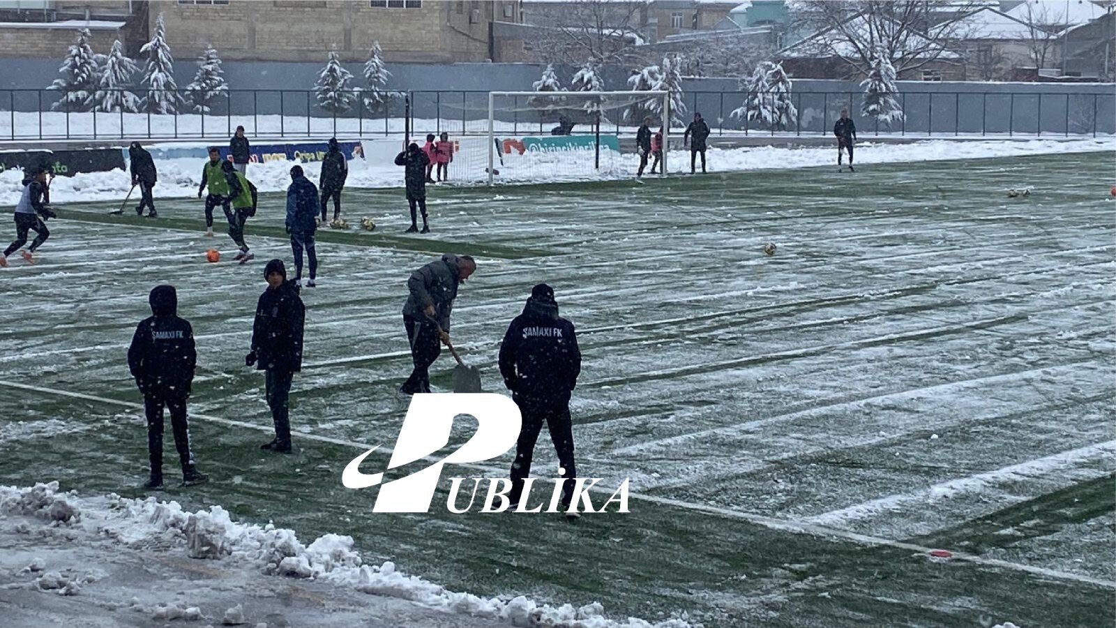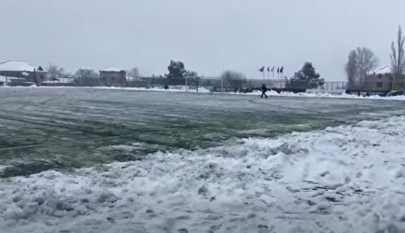 Şamaxıda stadionu qardan Qurban Qurbanov özü təmizləyir