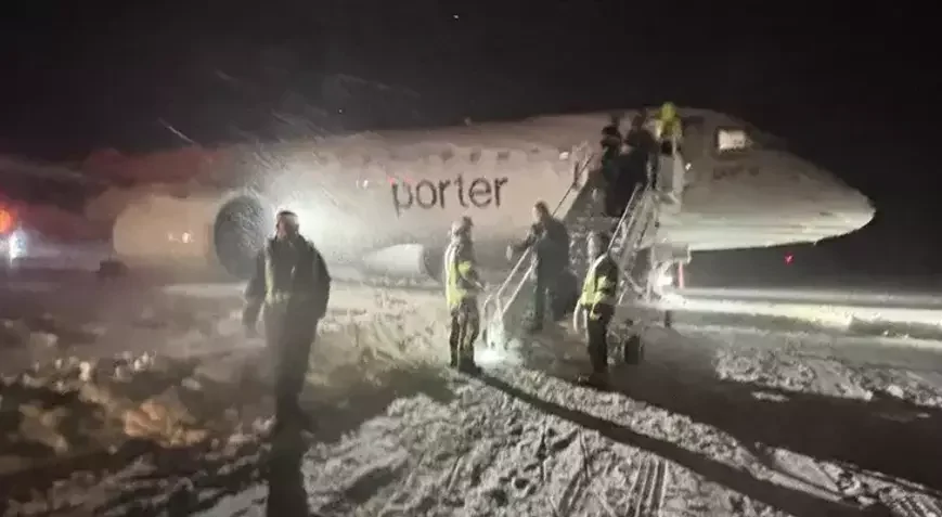 Sərnişin təyyarəsi qarda ilişdi