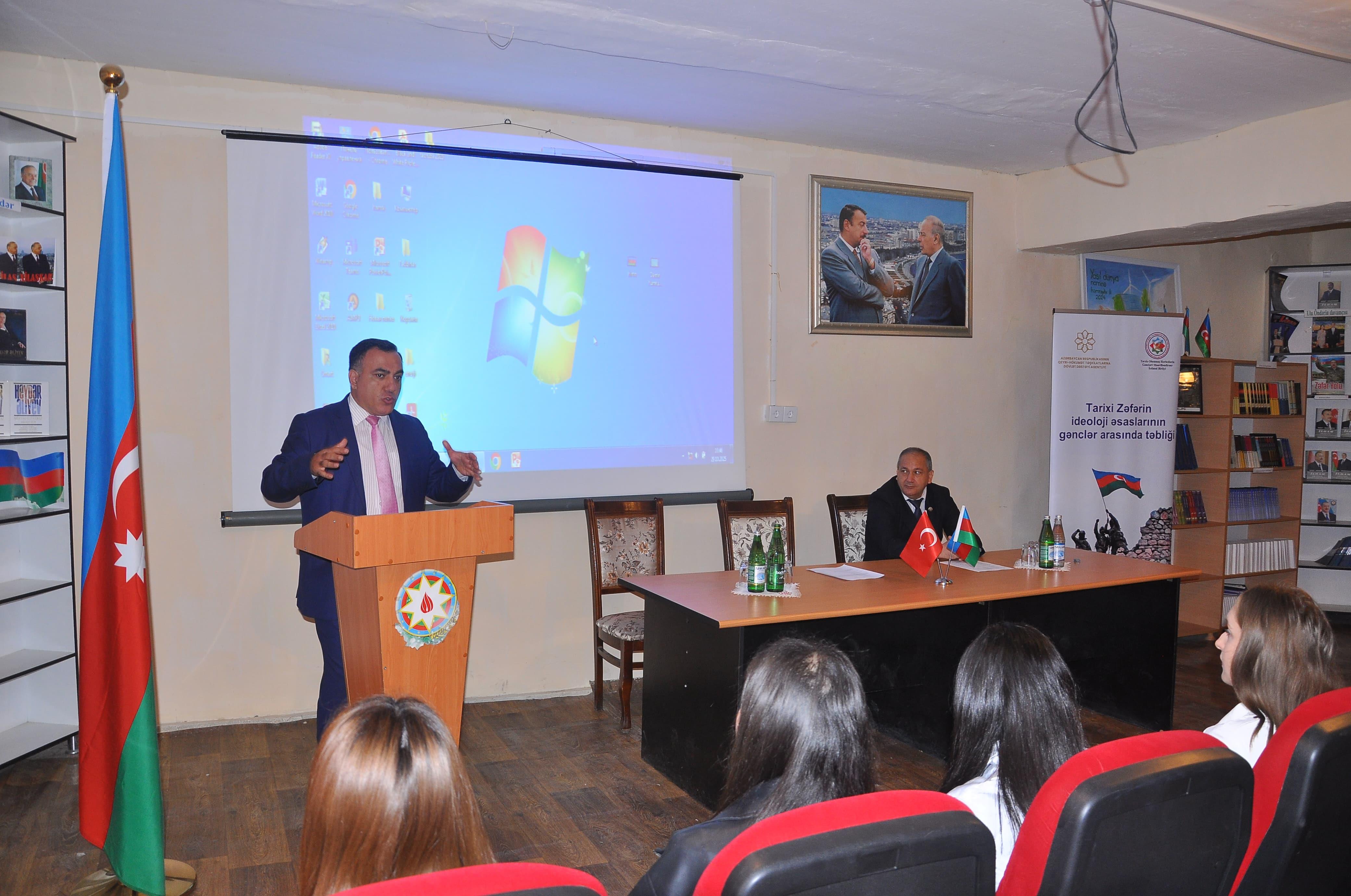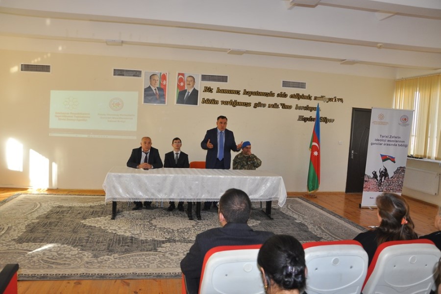 Yevlax şəhərində “Tarixi Zəfərin ideoloji əsaslarının gənclər arasında təbliği” layihəsi çərçivəsində ilk maarifləndirici görüş keçrildi