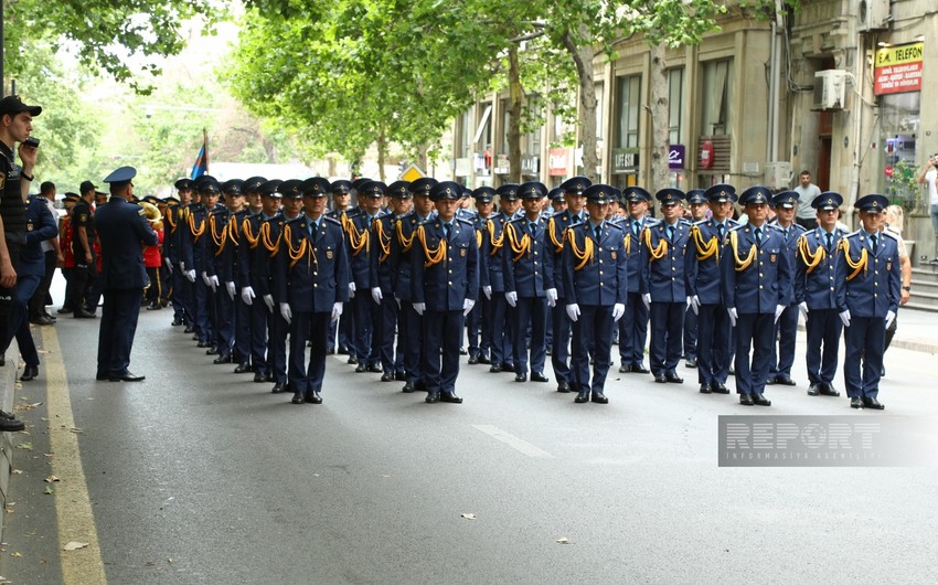 Bakının müxtəlif küçələrində hərbçilərin yürüşü keçirilib
