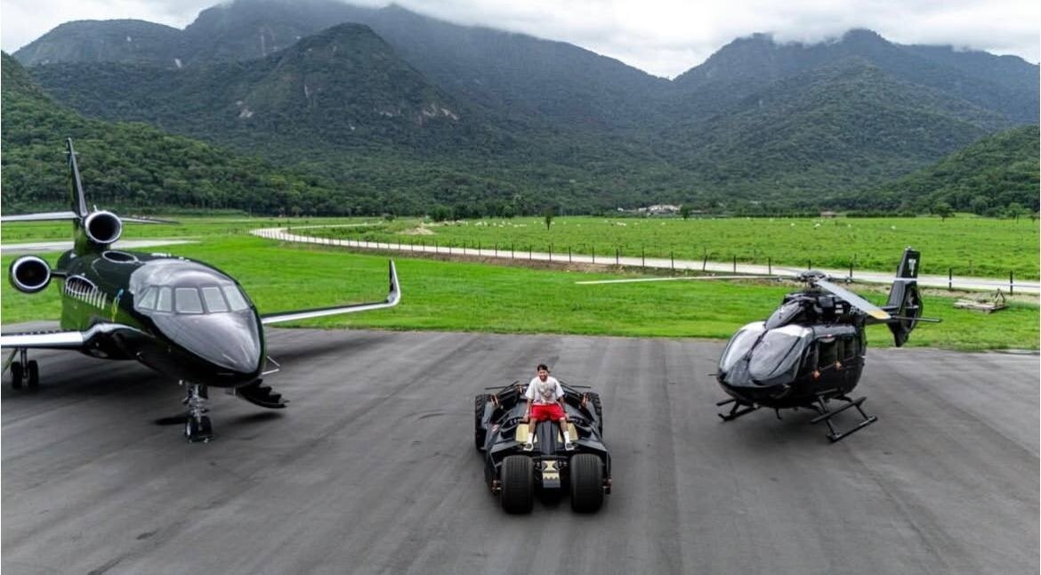Neymar təyyarəsini, helikopterini və "betmobil"ini nümayiş etdirdi