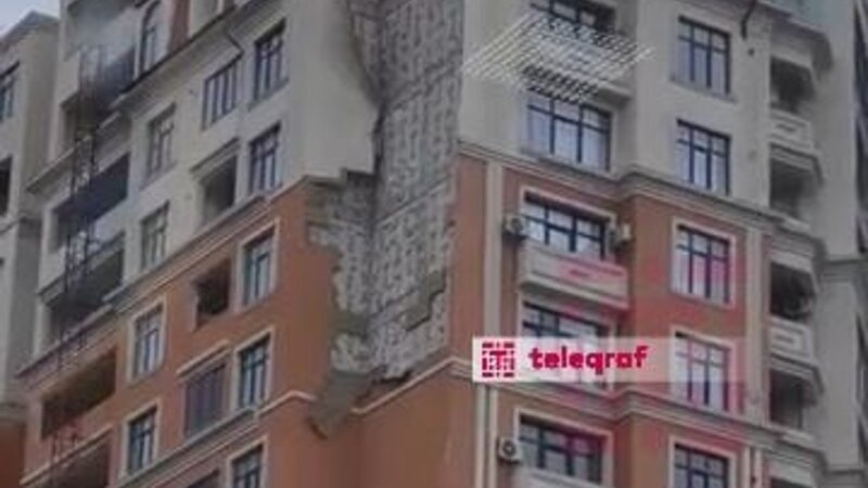 Bakıda yeni tikilən binanın üzlüyü qoparaq təhlükəyə səbəb olub -