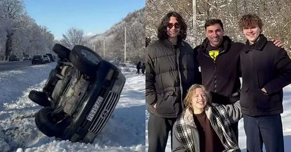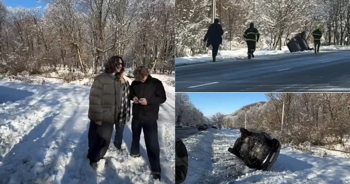 Maşın aşdı, içindəkilər çıxıb, sevinclə şəkil çəkdirdi Video