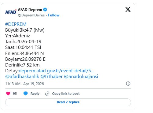 Aralıq dənizində zəlzələ oldu