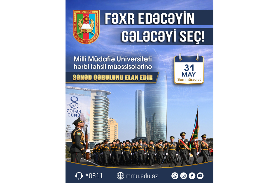 Milli Müdafiə Universiteti xüsusi təyinatlı təhsil müəssisələrinə sənəd qəbulunu davam etdirir
