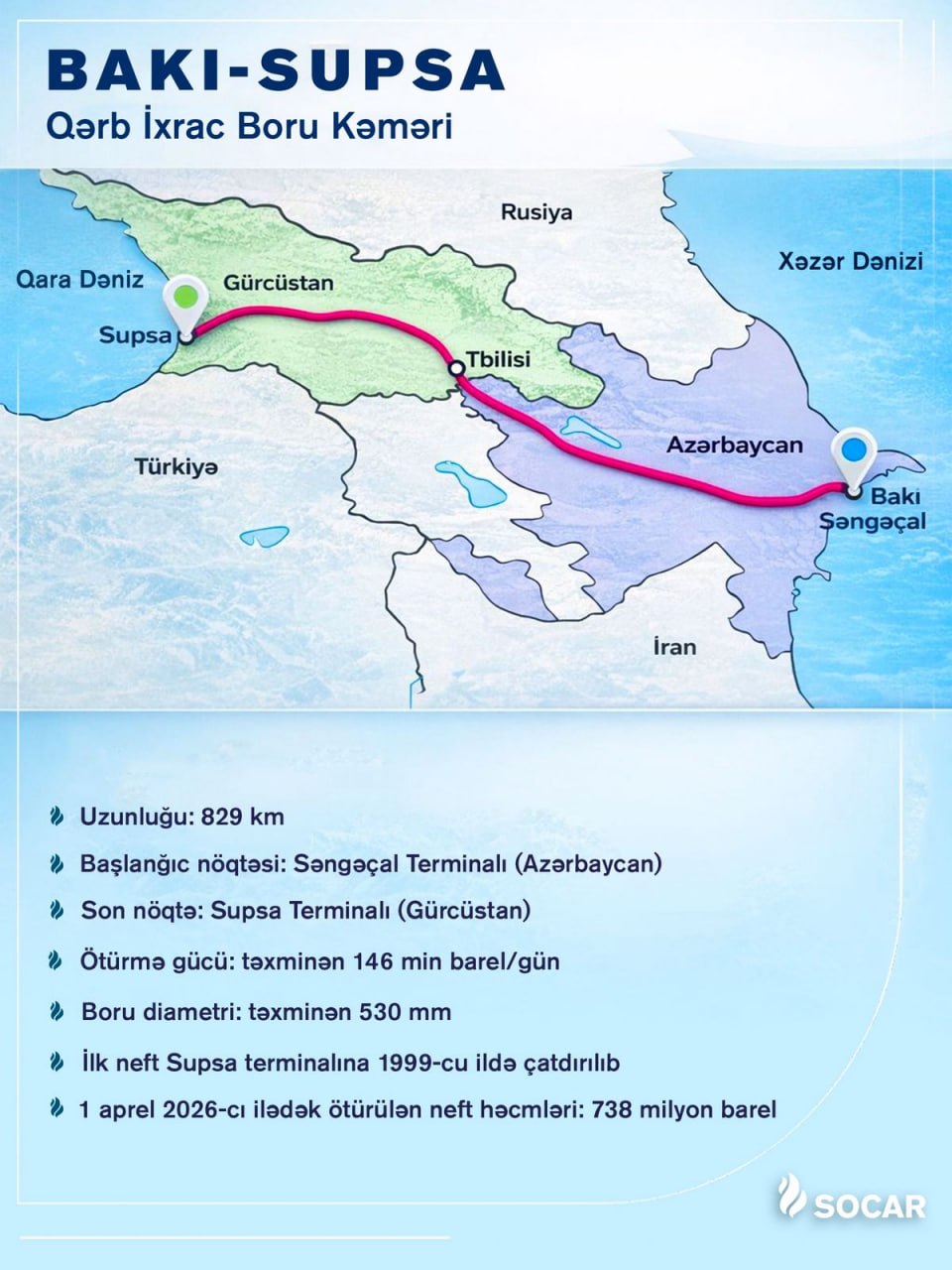 Bakı–Supsa Qərb İxrac Boru Kəməri ilə 738 milyon barel neft nəql edilib