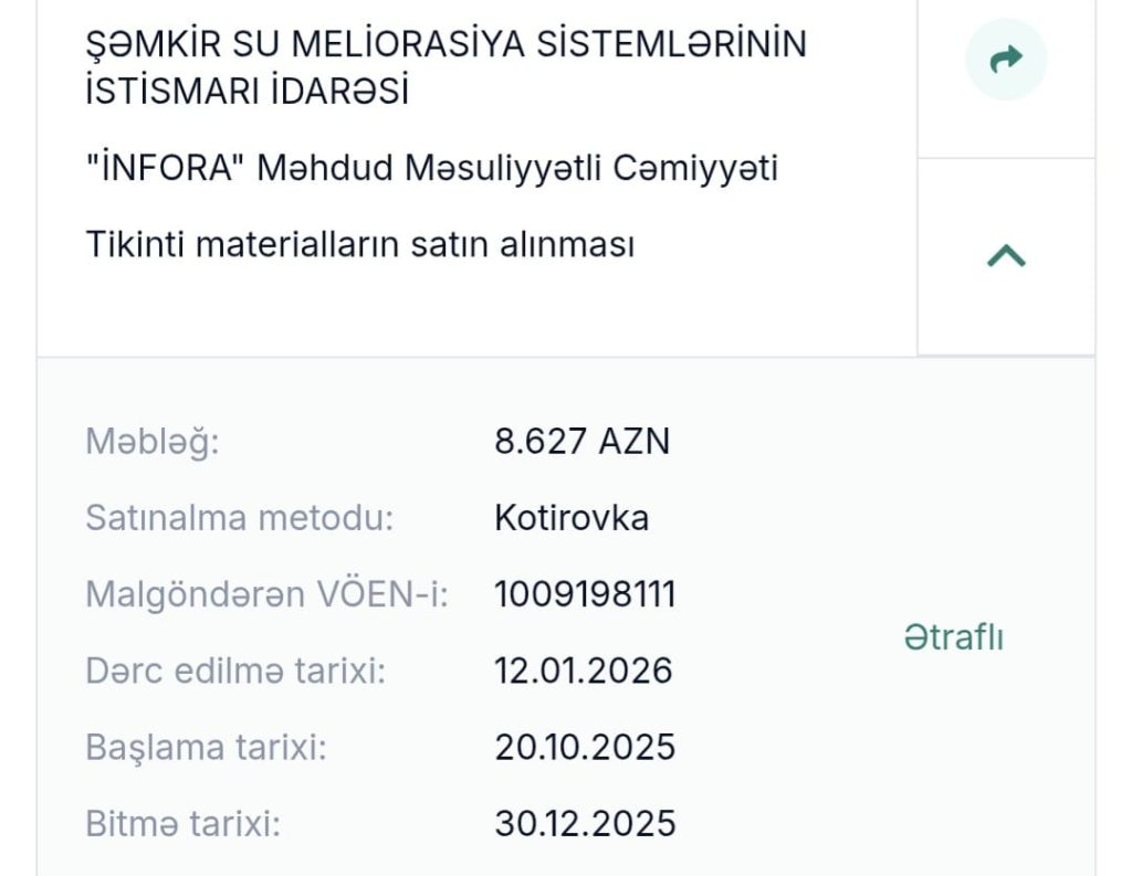 Şəmkir Su Meliorasiya Sistemlərinin İstismarı idarəsinin “1 milyon 800 min manat” Tenderləri…