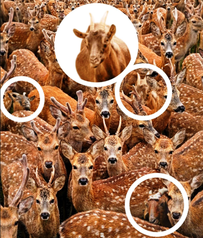 11 saniyədə maralların arasından üç keçi tapın: çox çətin TAPMACA