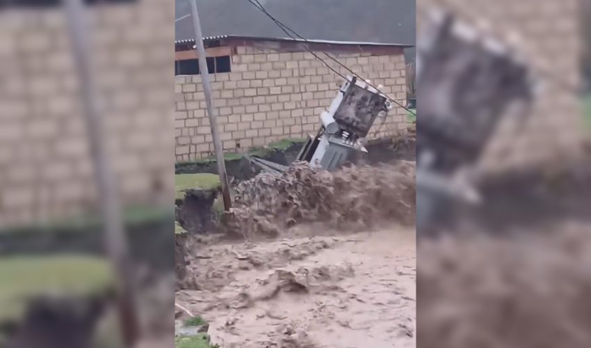 Qusarda sel transformatoru yuyub aparıb - Video