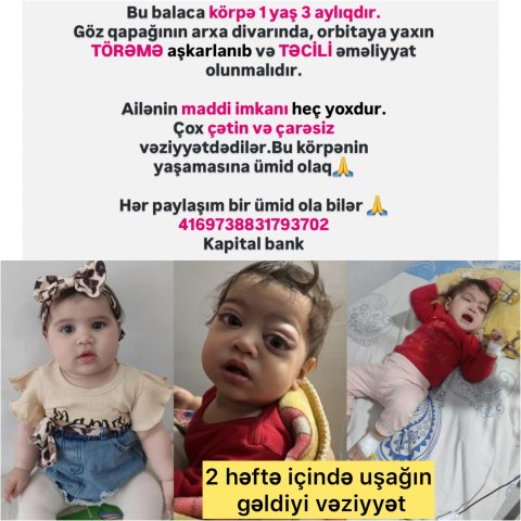 Bir yaşlı körpənin yaşaması üçün təcili əməliyyata ehtiyac var