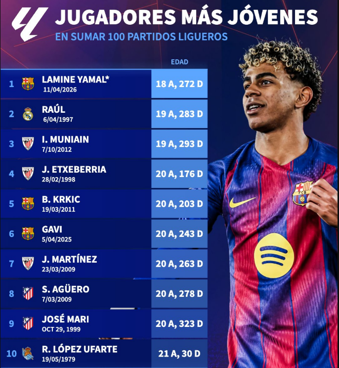Yamal La Liqa matçında 100 dəfə meydana çıxan ən gənc oyunçu olub