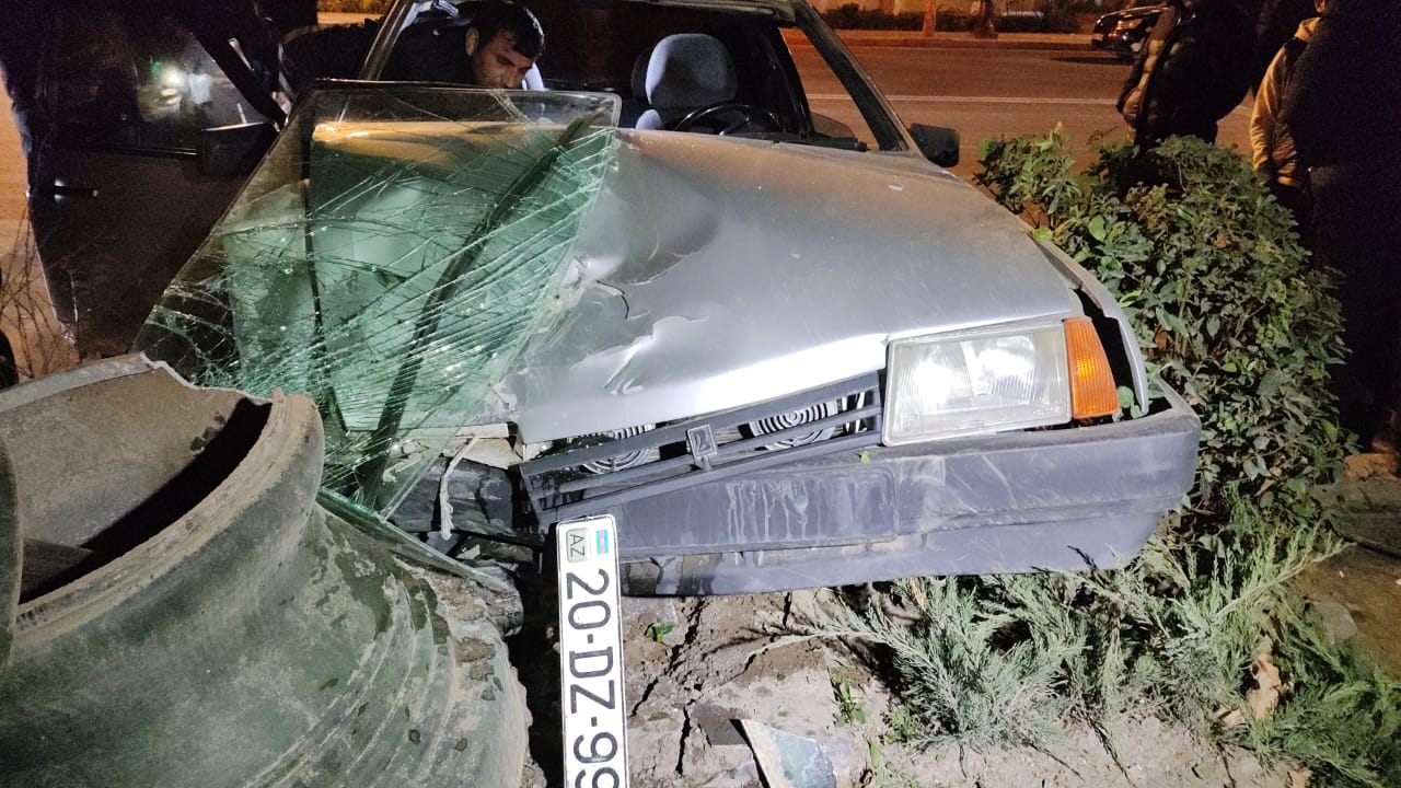 Gəncədə avtomobil işıq dirəyinə çırpıldı