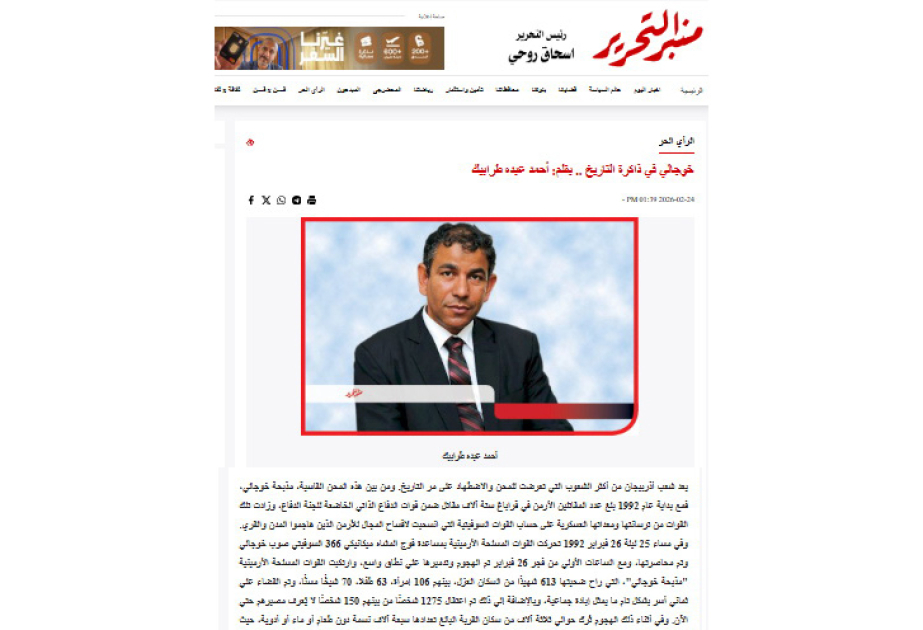 Misirli tədqiqatçı: Xocalı soyqırımı Azərbaycan xalqına qarşı törədilmiş ən ağır cinayətlərdəndir