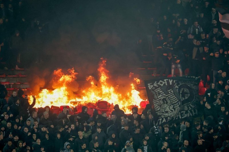 Alovlu derbi: Fişəng atəşi, yandırılan tribuna və...
