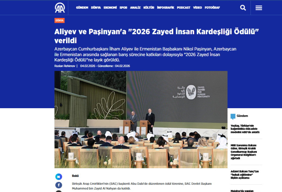 Prezident İlham Əliyevin Əbu-Dabiyə səfəri dünya mətbuatının diqqət mərkəzindədir