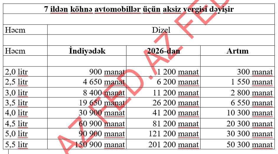 Benzinli maşınlar nə qədər bahalaşacaq? - CƏDVƏL