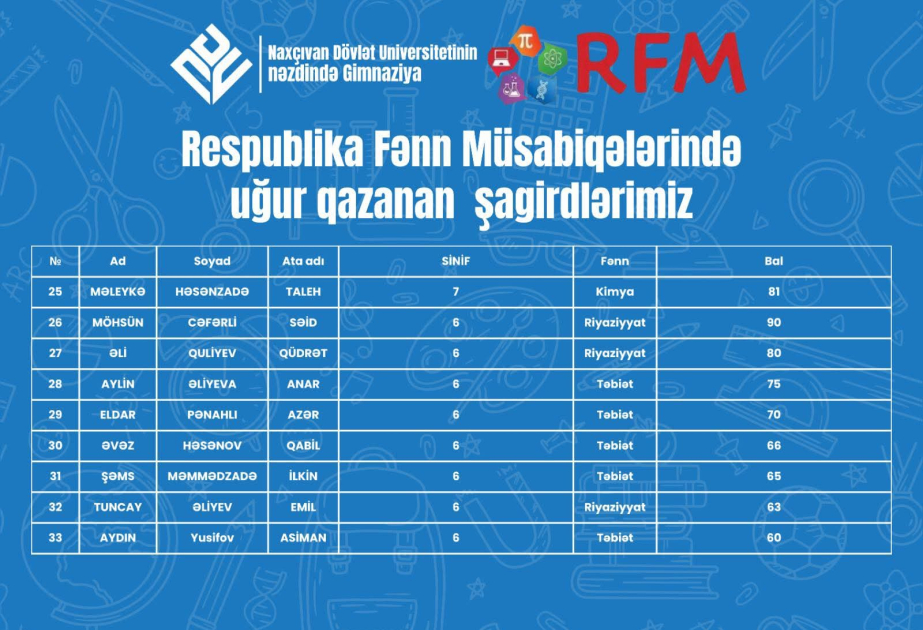 NDU nəzdində Gimnaziyanın 33 şagirdi fənn müsabiqələrində uğur qazanıb