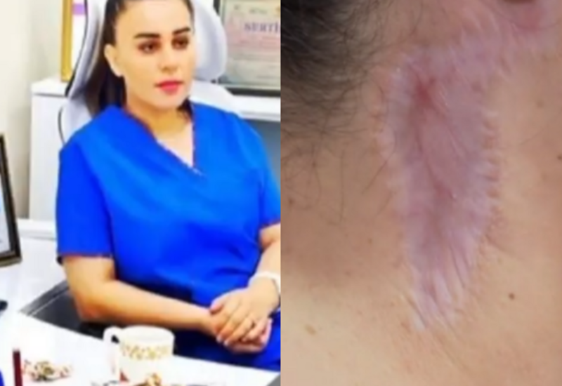 "Gedib danışdım, mənə 1200 manat dedi, 50 manat isə korset üçün istədi. Dedi sizə əməliyyatı 60% endirimlə edirəm. Əslində qiymət 1600 manatdır. Məni elə o gözəllik salonunda, klinikada da əməliyyat elədi. Hər dəfə çəkib şəklini atırdım. Deyirdi ki, düzəlir, yaxşıdı. Məndə çox böyük qüsur yaradıb. Sağ tərəfə ağzım əyilir, ağrılar verir. Hazırda mənim  boynumun hər iki tərəfində 11 sm kəsik var. Tibbdə bu cür boyungərmə əməliyyatı yoxdu. Dünən yanına getdim ki, məni bu gününə qoymusan, mənim pulumu qaytar, mən kasıb adamam. Dedi ki, mən sənə pul vermirəm. Bu sənin öz günahındır".