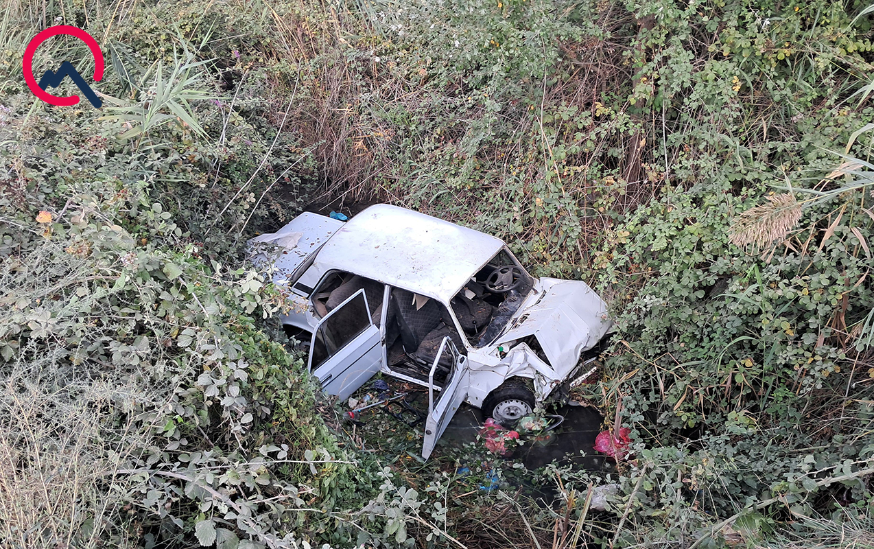 Bərdədə avtomobil kanala aşdı - FOTOLAR