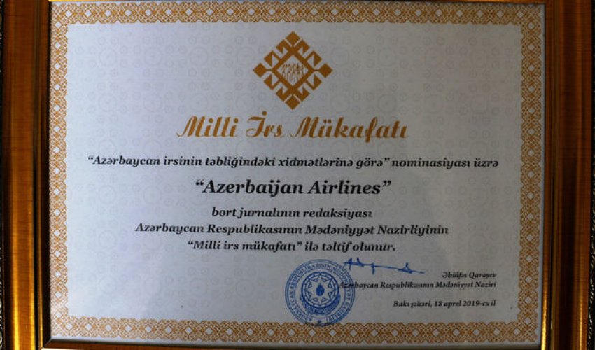 Журнал Azerbaijan Airlines удостоен престижной премии