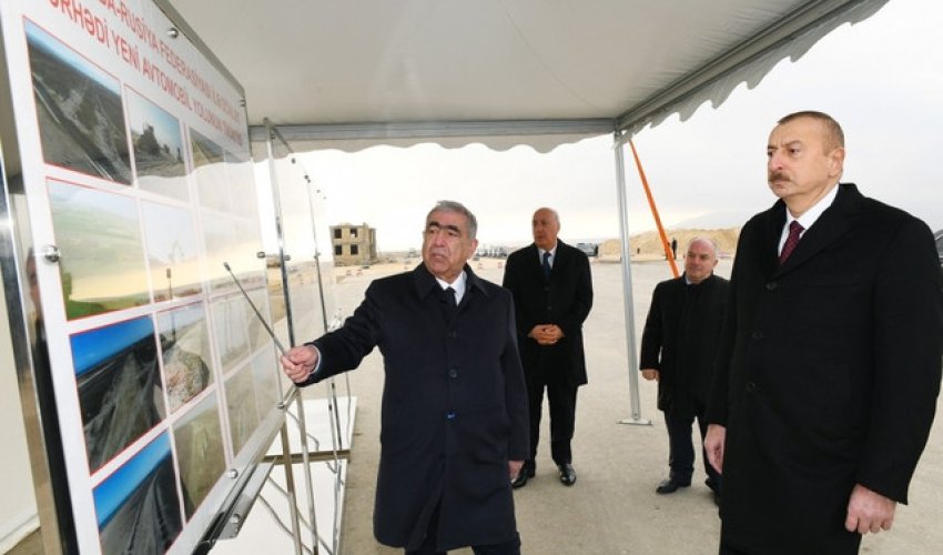 Президент ознакомился со строительством новой автодороги Баку-Губа-госграница России