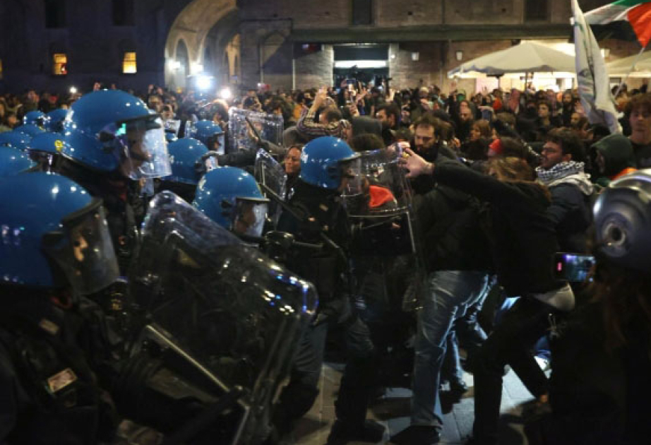 İtaliyada HƏMAS-ın İsrailə hücumunun ildönümünə görə keçirilən aksiyalarda polislə qarşıdurma baş verib