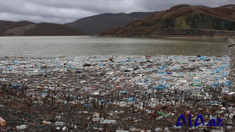 Kosovodakı Badovç bənd gölünün səthi zibil və tullantılarla örtülüb